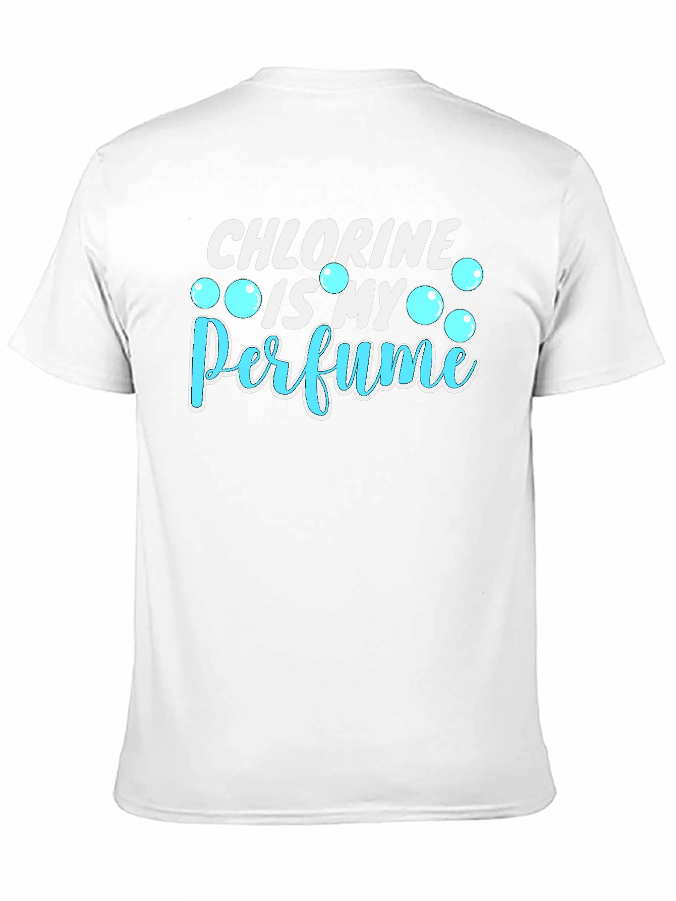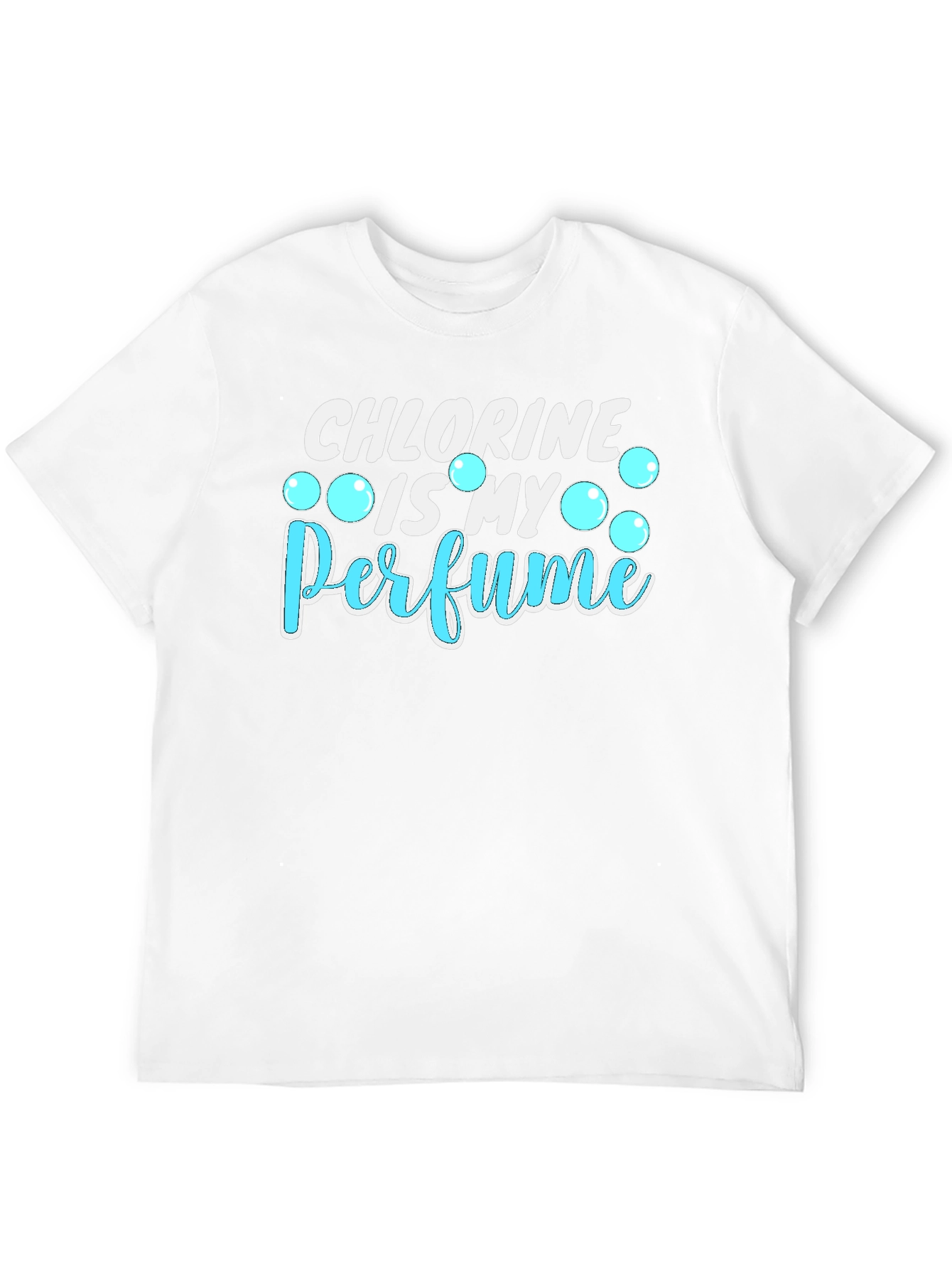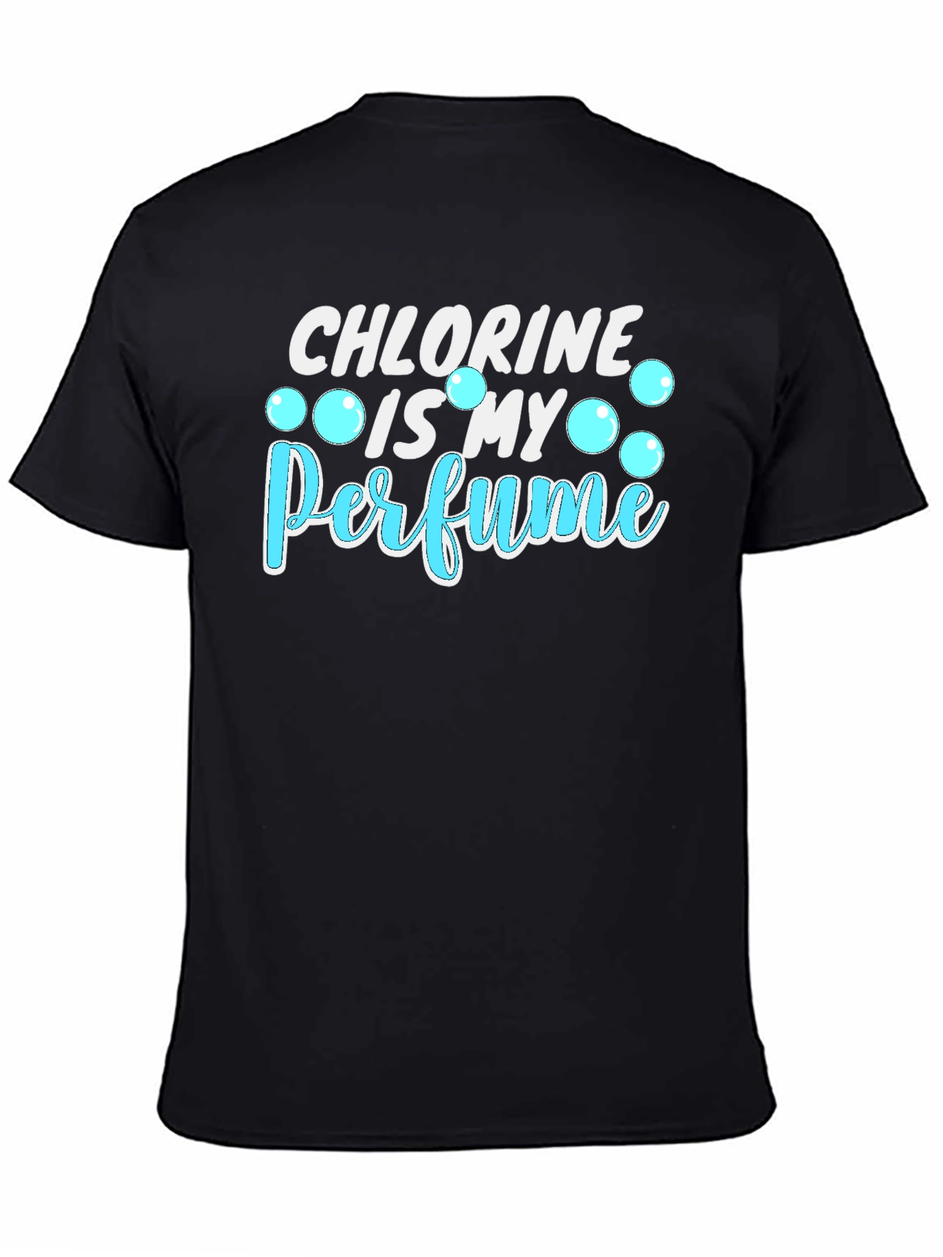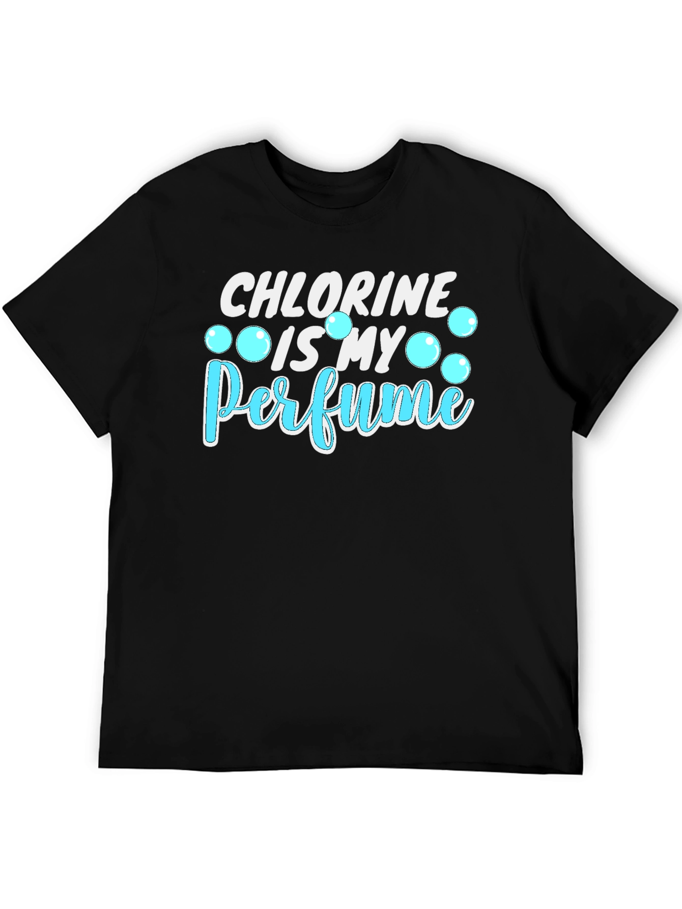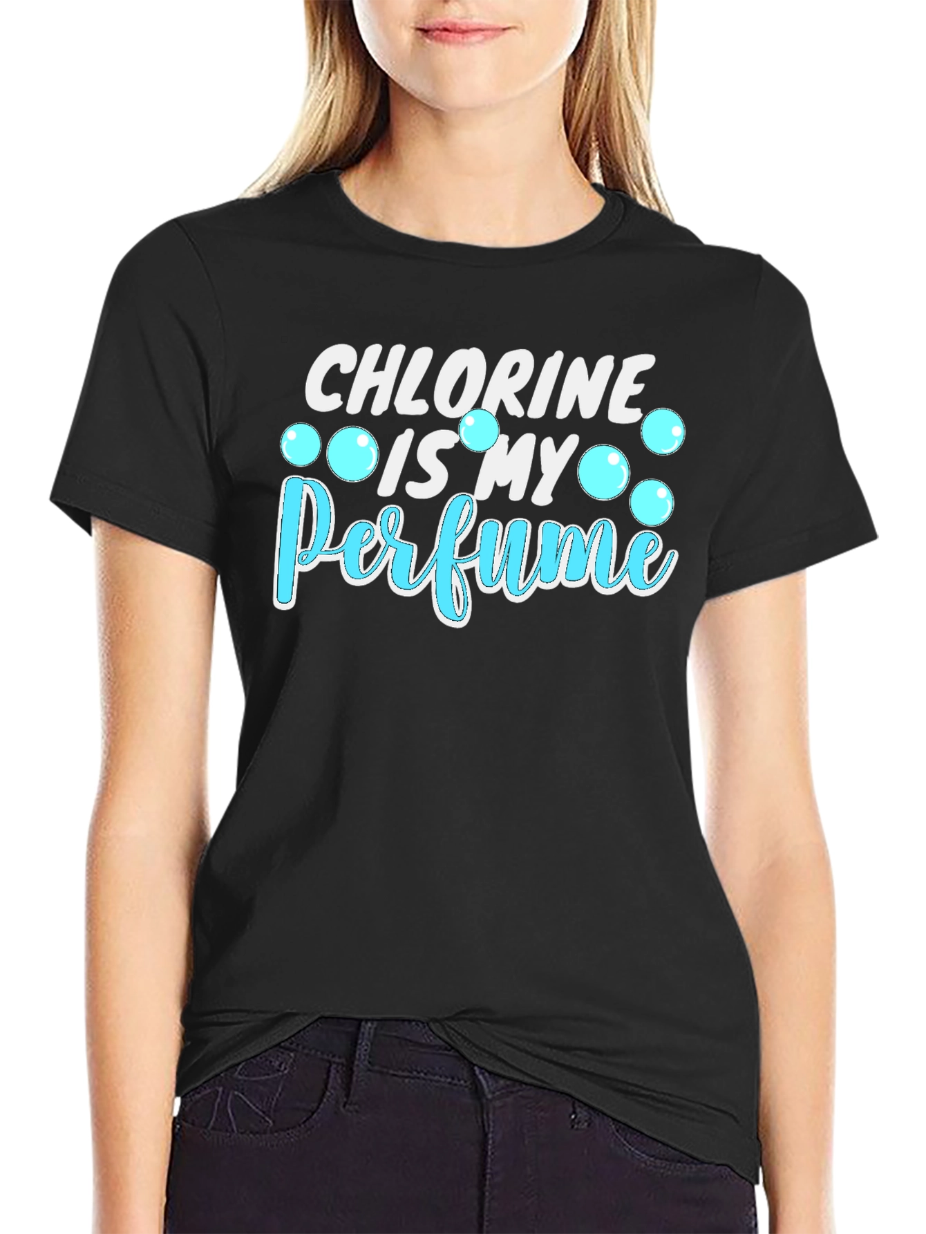 This eye-catching black t-shirt features a playful design for swimming enthusiasts. The text "CHLORINE IS MY PERFUME" is prominently displayed in a combination of white and blue lettering, complemented by whimsical blue bubble graphics. Made from a soft, breathable fabric, this shirt offers a comfortable fit for everyday wear. Whether you're a competitive swimmer, a lifeguard, or simply love spending time in the pool, this t-shirt is a fun way to express your passion. It's also a great gift for swim teams, coaches, or anyone who appreciates the unique scent of chlorine! Show off your love for swimming with this stylish and comfortable tee.