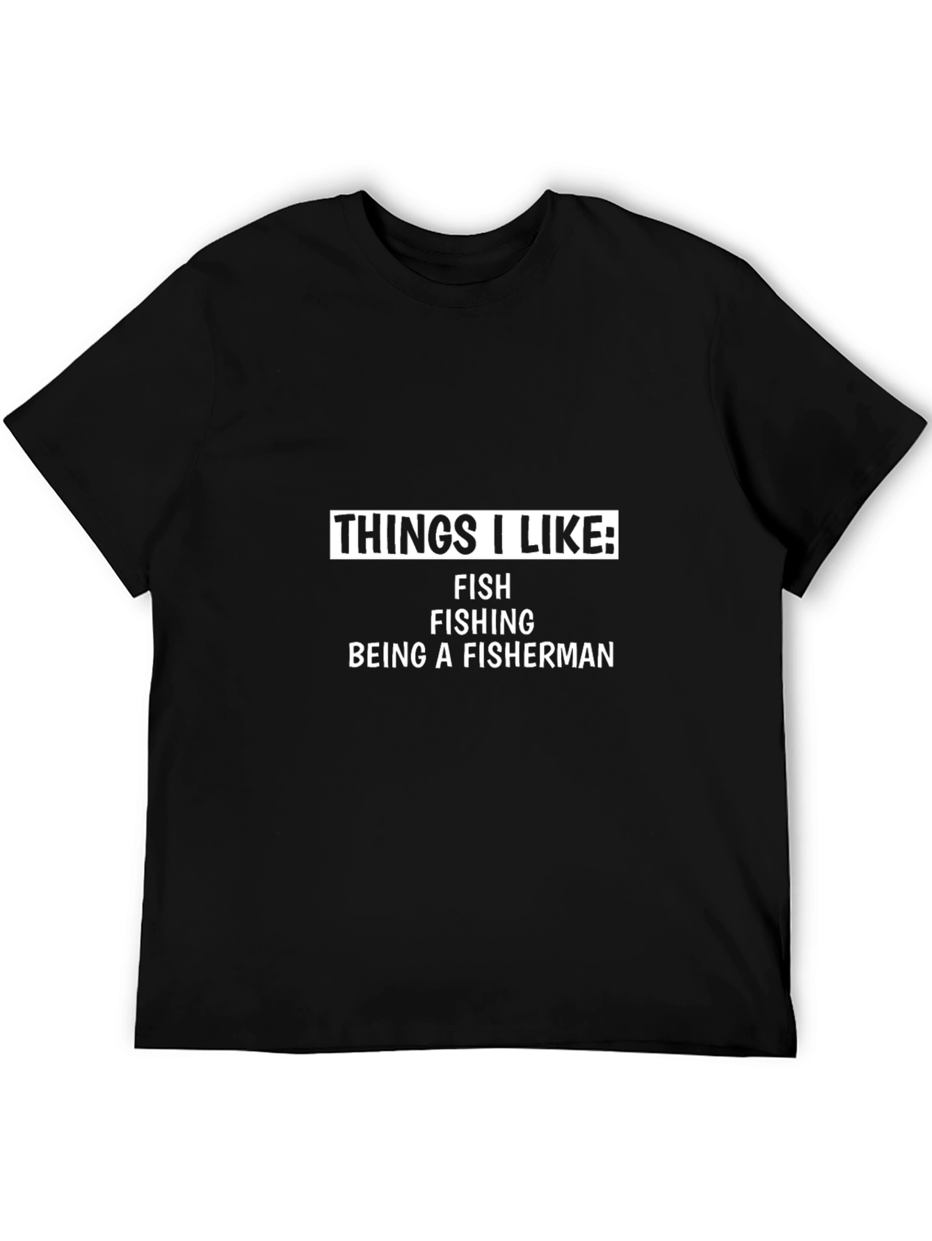 This classic black t-shirt is perfect for anyone who loves fishing. The tee features bold, white text that reads "THINGS I LIKE: FISH FISHING BEING A FISHERMAN", making it a fun and humorous statement piece. Made from a soft, comfortable material, this shirt is ideal for casual wear, fishing trips, or as a gift for the avid angler in your life. Show off your passion for fishing with this comfortable and stylish t-shirt. It's a great addition to any fisherman's wardrobe!