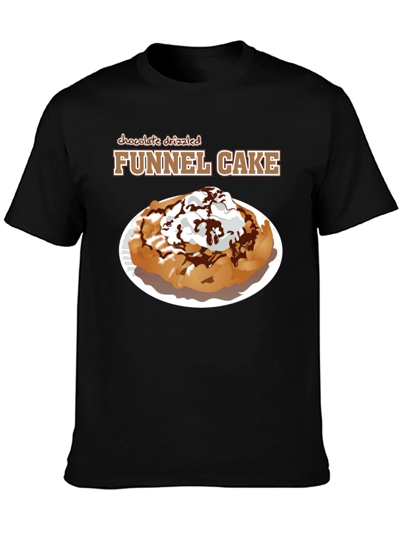 Indulge your sweet tooth with this eye-catching Funnel Cake T-Shirt. This black tee features a delectable image of a chocolate drizzled funnel cake topped with whipped cream. The design is printed vividly on soft, breathable fabric, ensuring both comfort and style. Perfect for foodies, dessert enthusiasts, or anyone with a love for delicious treats, this tee is sure to turn heads and spark conversations. Wear it to your next fair, carnival, or simply as a fun statement piece. A must-have addition to any casual wardrobe. Get yours today!