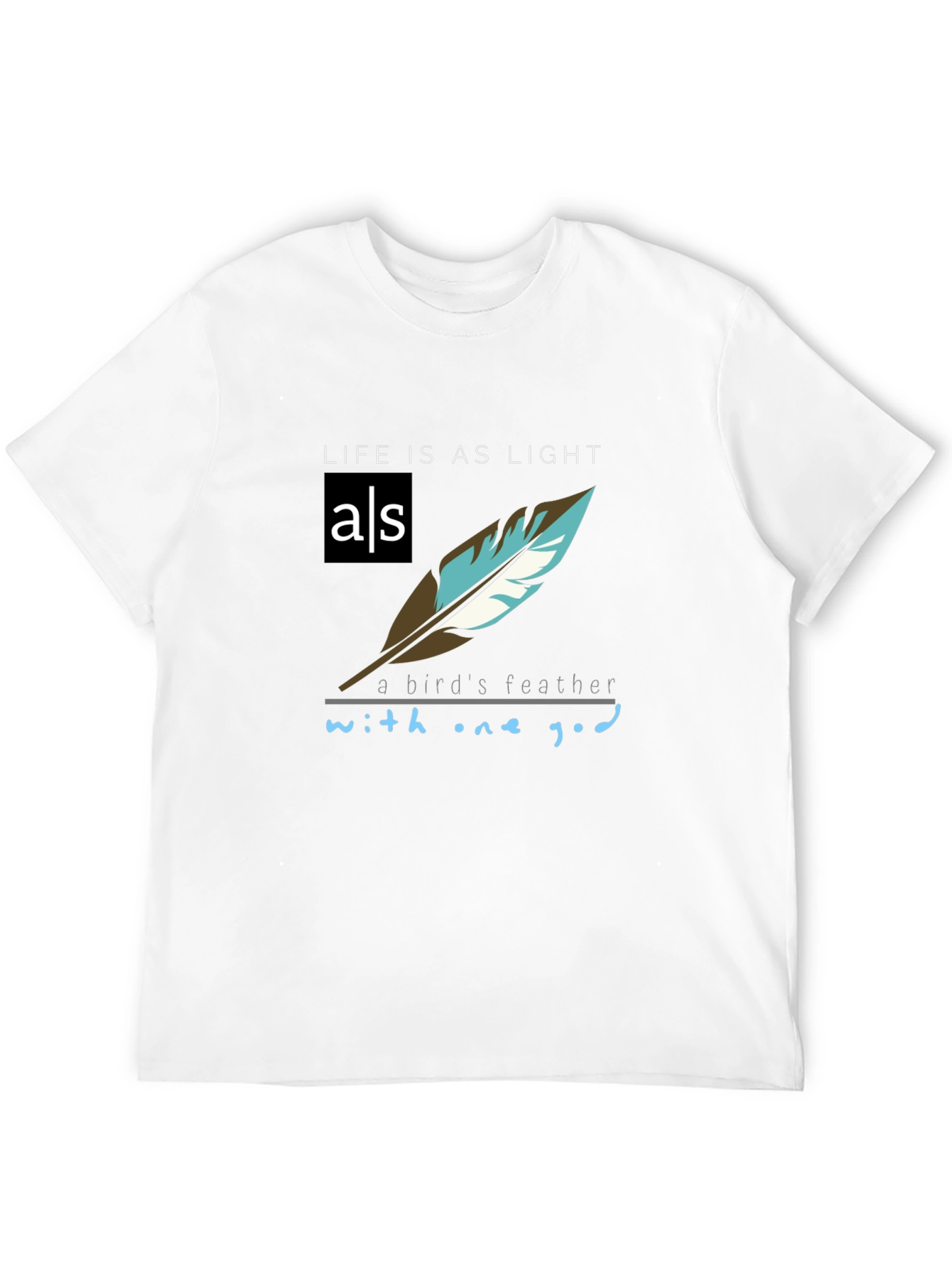 Embrace a message of lightness with this stylish black t-shirt. Featuring a unique graphic, the design includes the phrase "LIFE IS AS LIGHT," a feather illustration, and the words "a bird's feather with one god" in a soothing blue hue. The shirt appears to be made from a comfortable cotton blend, perfect for everyday wear. This tee makes a statement, combining meaningful text with an eye-catching design. Ideal for casual outings, relaxed weekends, or as a thoughtful gift. Let this t-shirt be a reminder to find lightness and beauty in life's simplest moments.