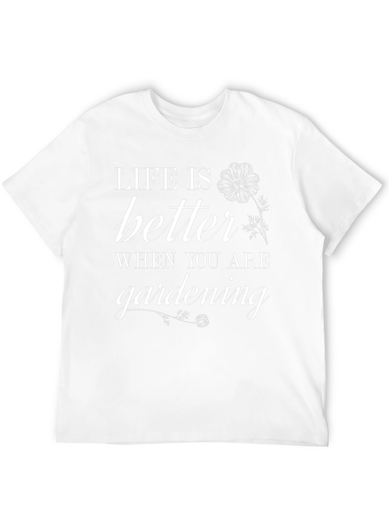 Embrace your love for gardening with this stylish and comfortable graphic tee. This black t-shirt features a bold, white print that reads "Life is better when you are gardening", accompanied by delicate floral illustrations. Made from a soft, breathable fabric, it's perfect for everyday wear, whether you're tending to your garden, running errands, or simply relaxing at home. The classic crew neck and short sleeve design offer a timeless look, making it a versatile addition to any wardrobe. Show off your passion for plants and bring a touch of nature to your style with this unique t-shirt!