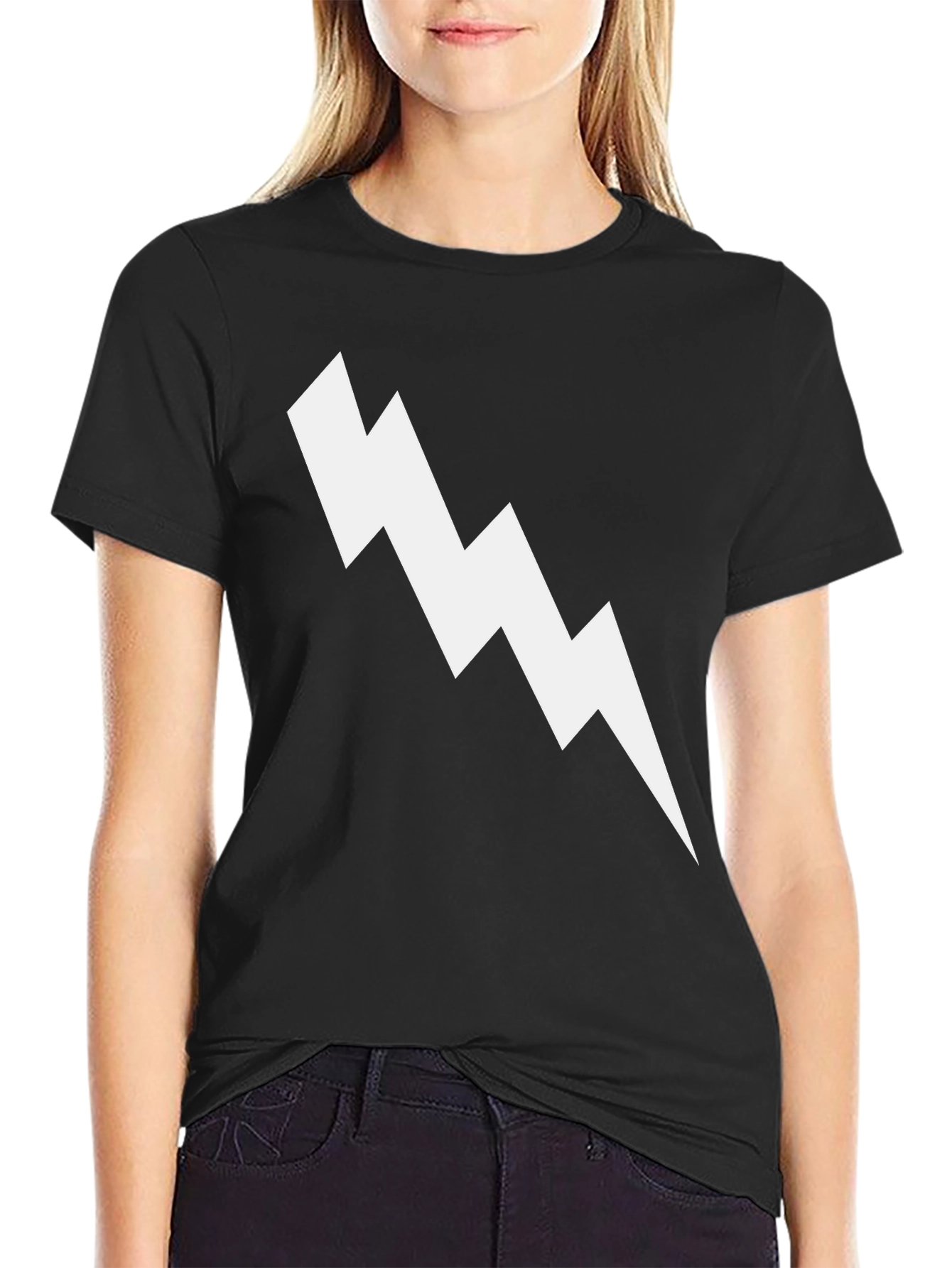 Make a bold statement with this striking black t-shirt. Featuring a clean, white lightning bolt graphic across the chest, this tee is a simple way to add some edge to your look. The shirt appears to be made from a comfortable cotton material. The classic crew neck and short sleeves make it ideal for everyday wear. Dress it up with dark jeans and boots or down with shorts and sneakers. A versatile staple for any casual wardrobe.