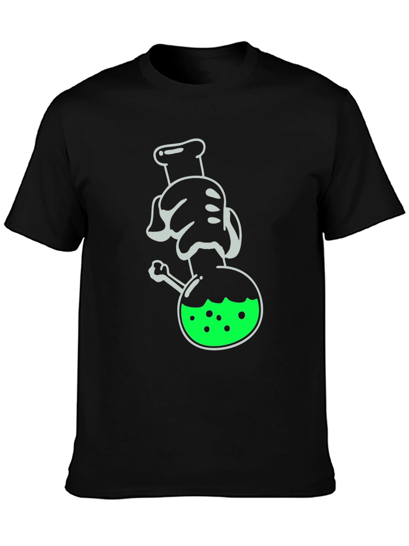 Unleash your inner mad scientist with this unique black t-shirt! Featuring a playful cartoon graphic of gloved hands holding a bubbling green beaker, this tee is sure to spark conversation. The design pops against the dark fabric, making it a fun and eye-catching piece. Perfect for casual wear, science enthusiasts, or anyone with a quirky sense of humor. This comfortable and stylish t-shirt will add a touch of playful science to your everyday wardrobe. Get yours today!