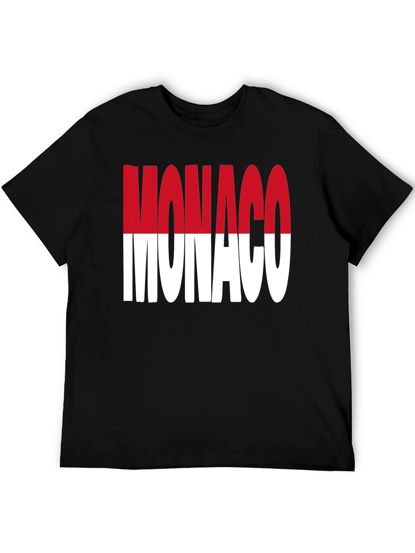 Show off your Monaco pride with this eye-catching t-shirt. The bold 'MONACO' text is filled with the country's iconic red and white flag. Made from a comfortable-looking dark fabric, this tee is perfect for casual wear or showing support during sporting events. The design is printed large across the chest, ensuring it stands out. It's a great addition to any wardrobe, allowing you to express your love for Monaco in style. Ideal for tourists, locals, or anyone with an affinity for this beautiful country. Wear it to the beach, on vacation, or just around town to showcase your connection to Monaco.