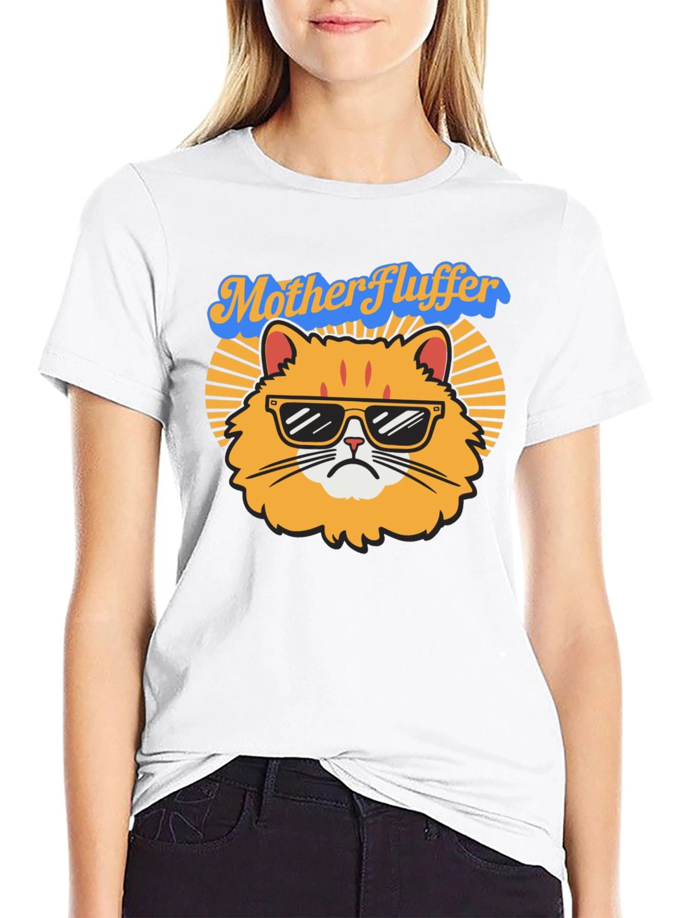 Show off your sassy side with this fun and unique t-shirt! This black tee features a cool orange cat graphic wearing sunglasses, accompanied by the playful text "Mother Fluffer." The design is set against a retro-style sunburst background, adding a touch of vintage flair. Made from a comfortable-looking material, this shirt is perfect for casual wear, lounging, or making a statement. Whether you're a cat lover or just enjoy quirky fashion, this t-shirt is sure to turn heads and spark conversations.