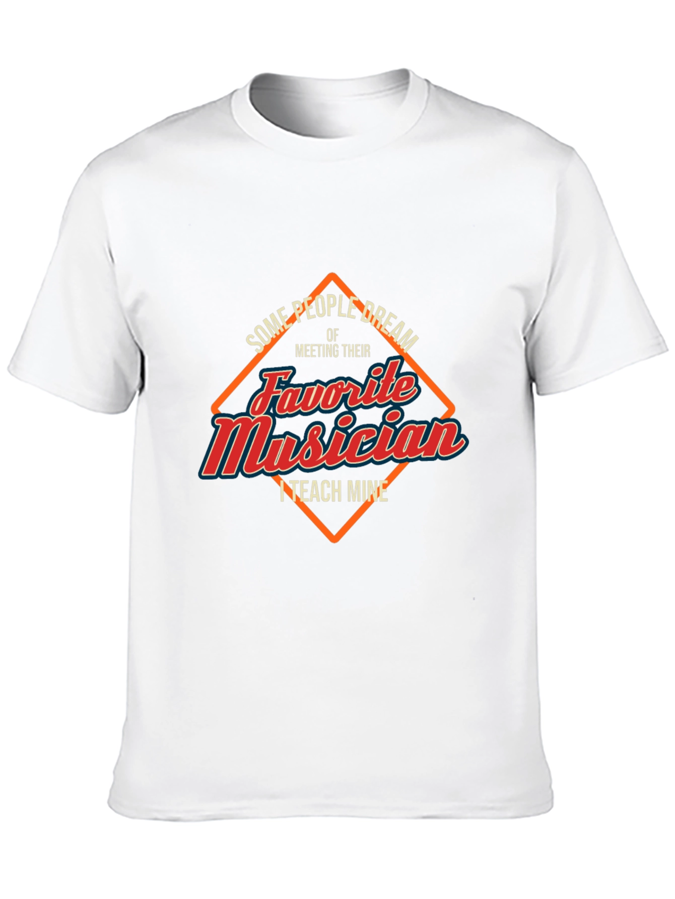 Show your pride as a music teacher with this stylish black graphic tee. This t-shirt features a catchy slogan: "Some people dream of meeting their favorite Musician, I teach mine," enclosed in a vibrant orange and red design. Crafted from comfortable cotton, this tee is perfect for casual wear, music lessons, or showing off your passion for teaching music. Makes a great gift for music teachers and instructors! Get yours today!
