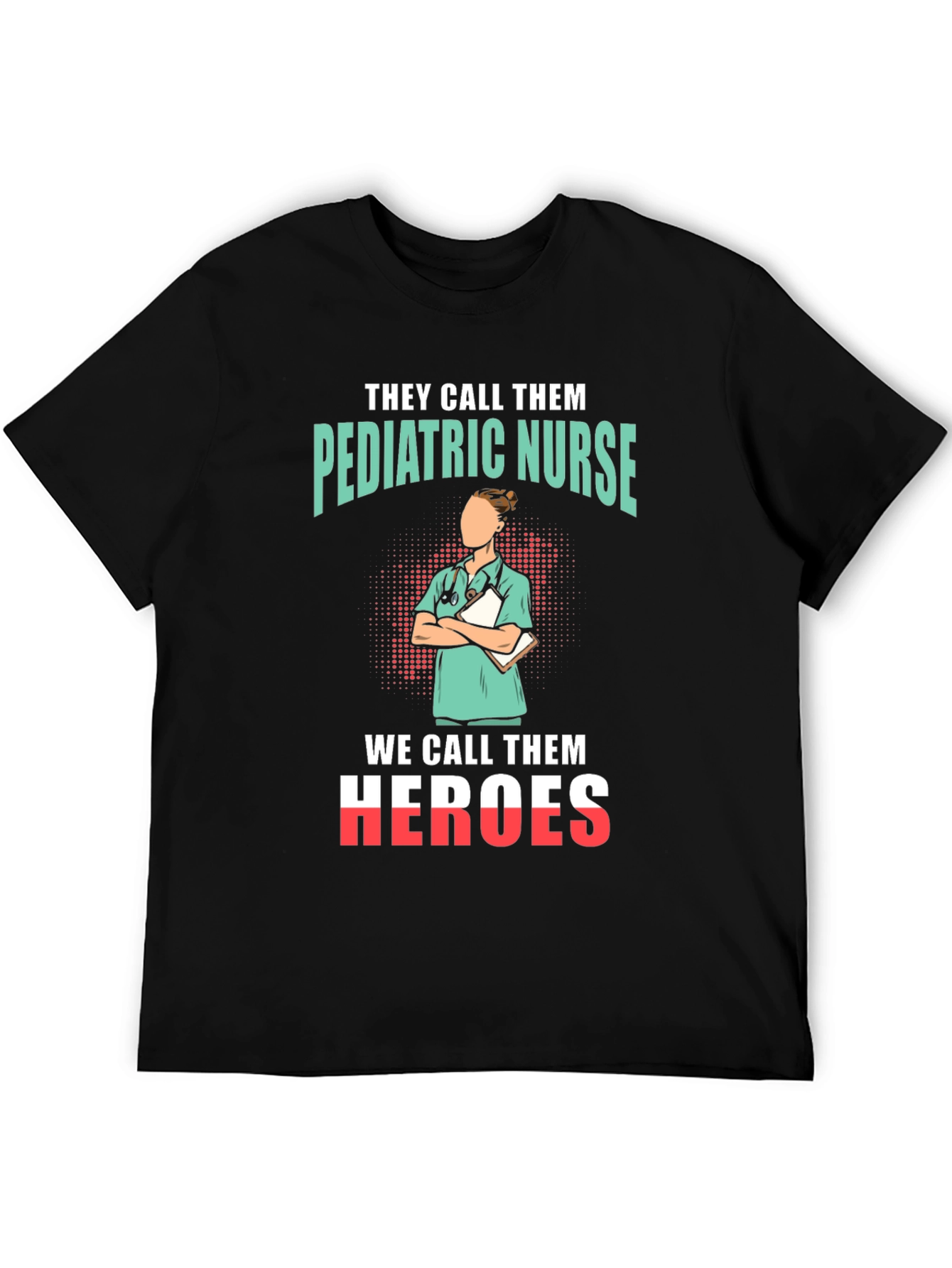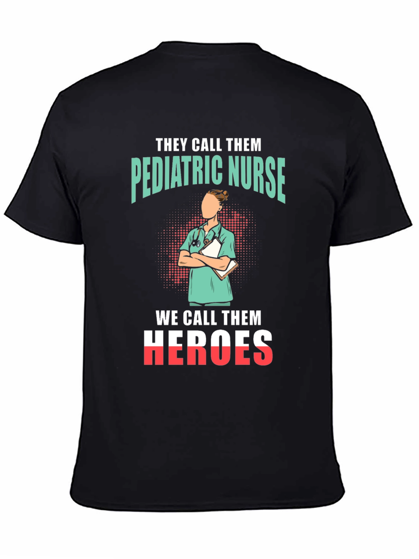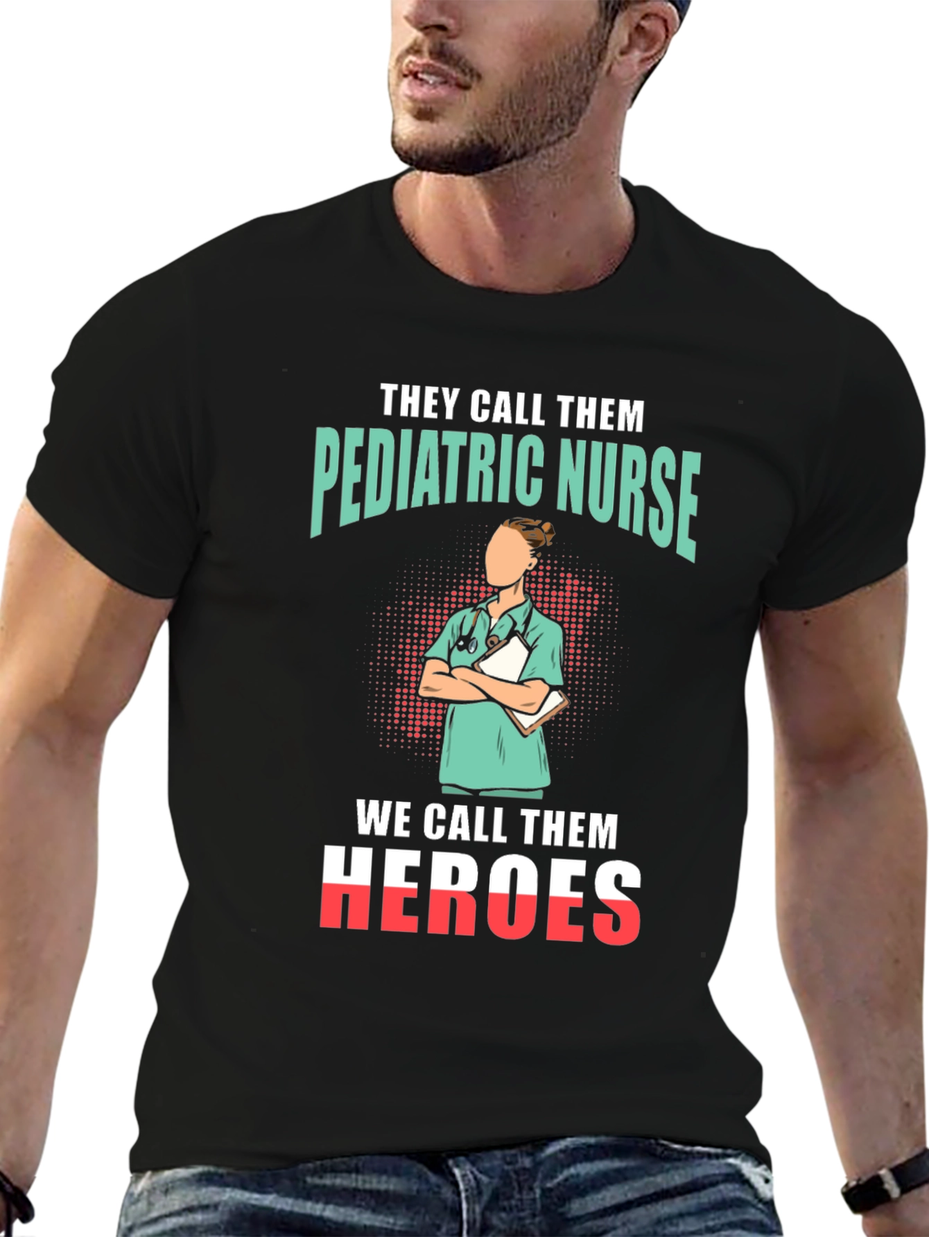 Show your appreciation for pediatric nurses with this unique t-shirt! The design features the words "They Call Them Pediatric Nurse" in a stylish font, accompanied by a graphic of a nurse. Below, it reads "We Call Them Heroes," emphasizing their vital role. This black tee is a comfortable and casual way to support healthcare professionals. Perfect for nurses, their families, or anyone who wants to recognize their dedication. Wear it to work, volunteer events, or casual outings. A great gift idea to show your gratitude!