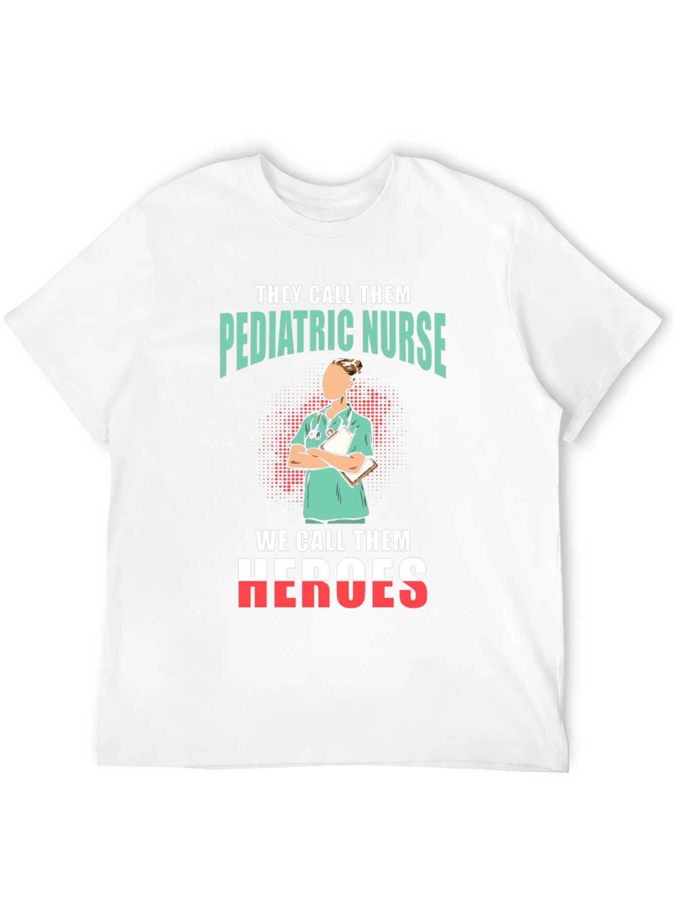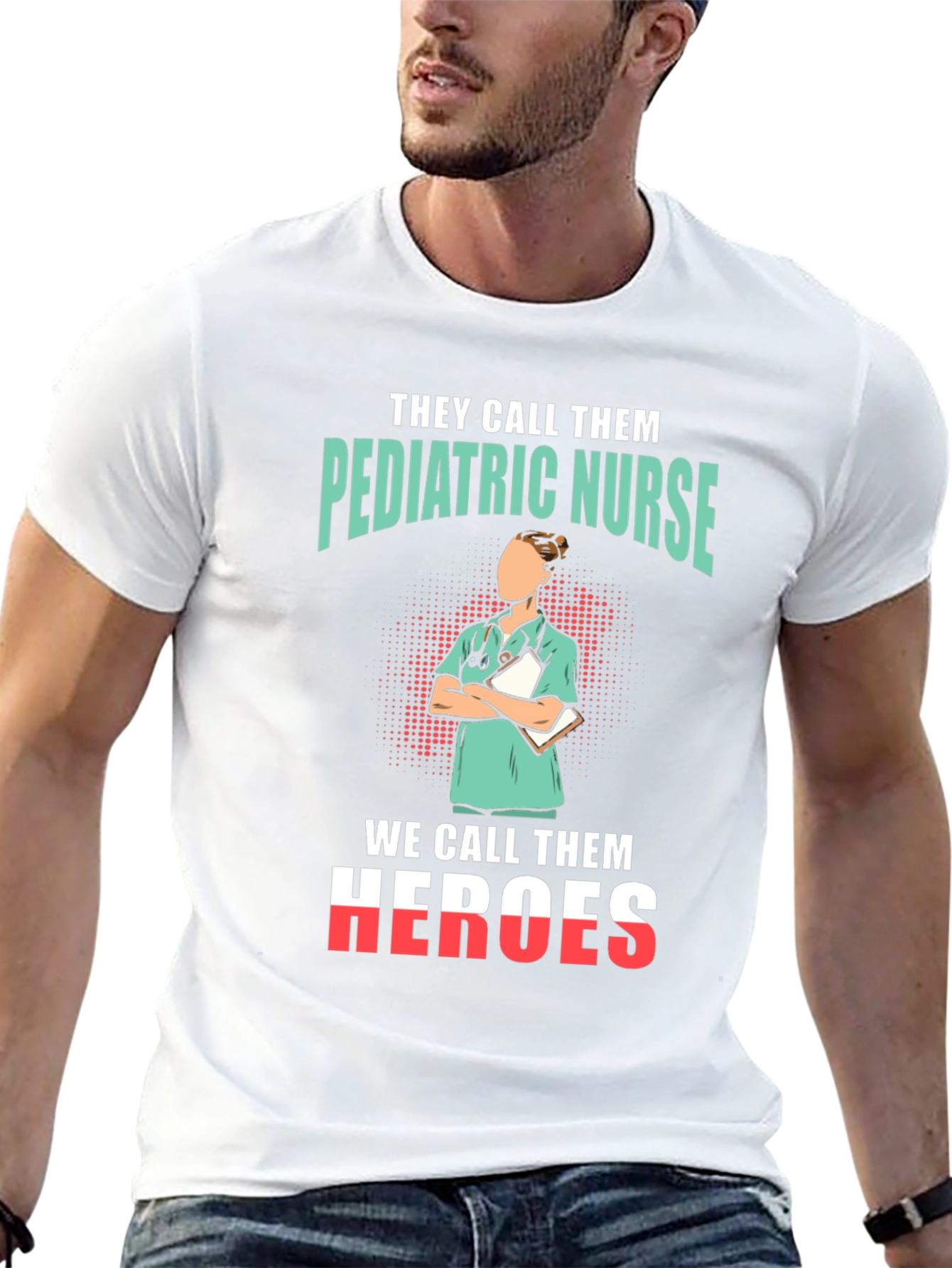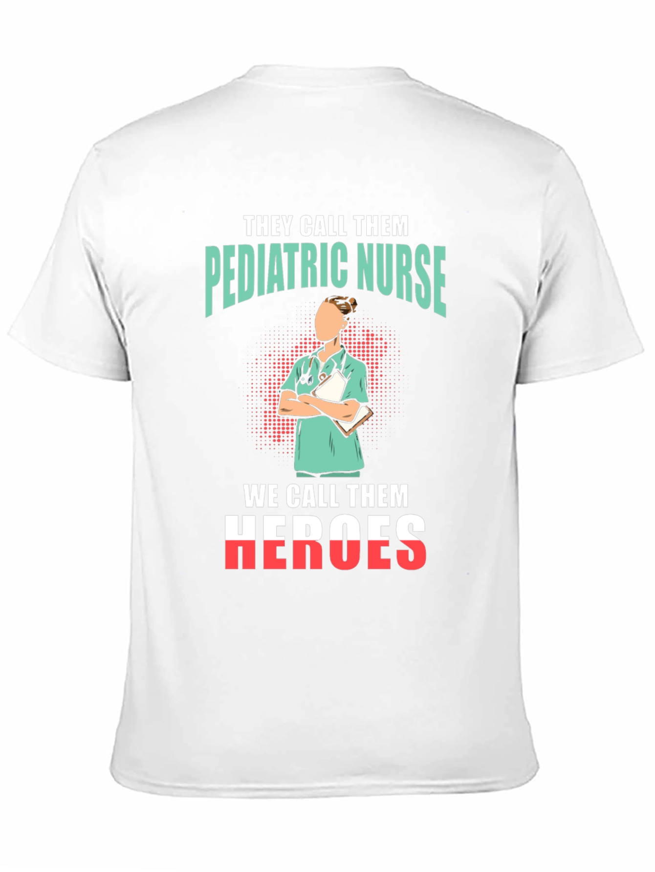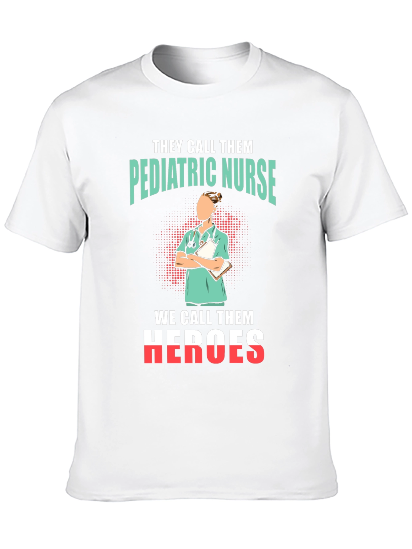 Show your appreciation for pediatric nurses with this unique t-shirt! The design features the words "They Call Them Pediatric Nurse" in a stylish font, accompanied by a graphic of a nurse. Below, it reads "We Call Them Heroes," emphasizing their vital role. This black tee is a comfortable and casual way to support healthcare professionals. Perfect for nurses, their families, or anyone who wants to recognize their dedication. Wear it to work, volunteer events, or casual outings. A great gift idea to show your gratitude!