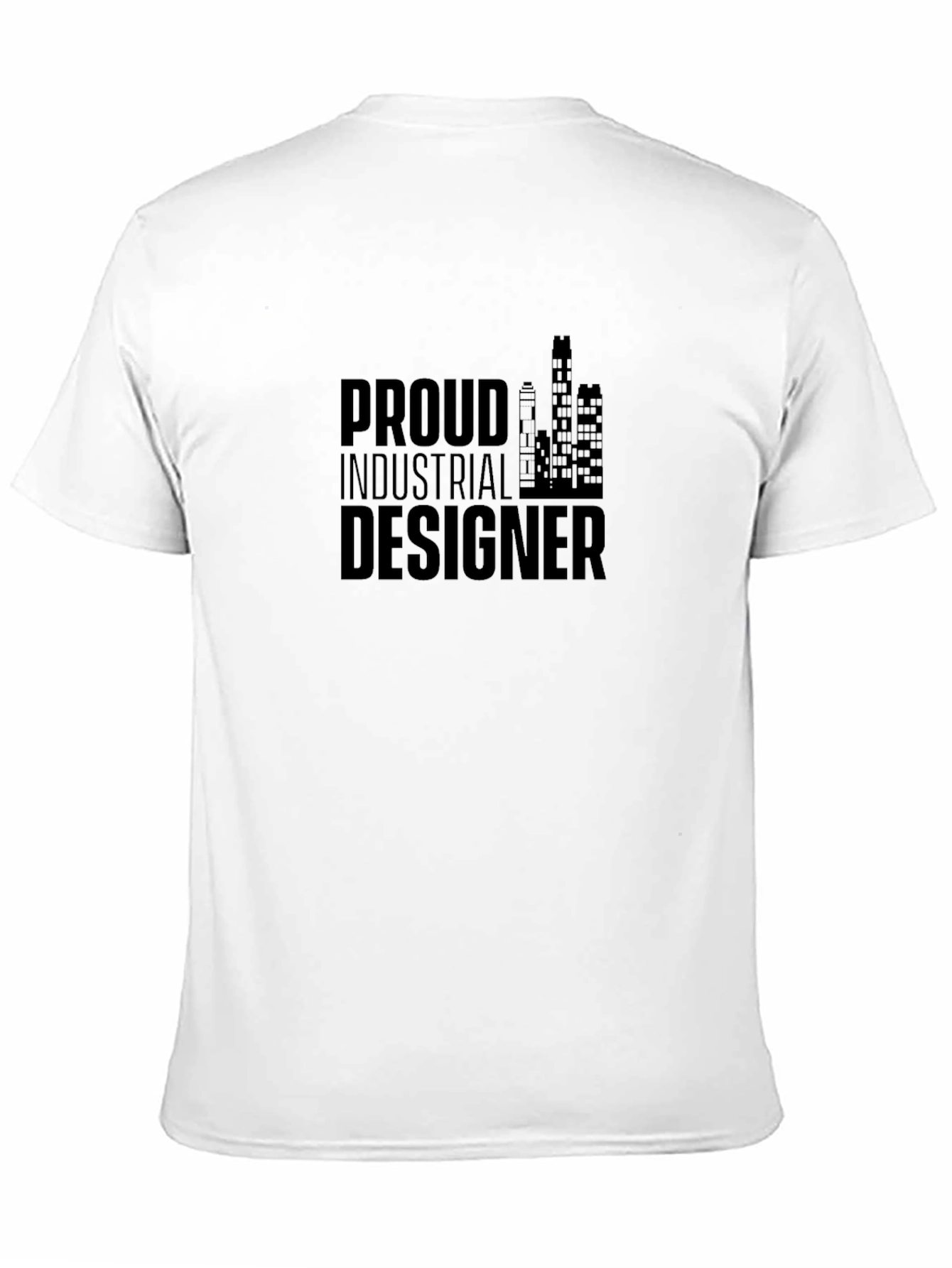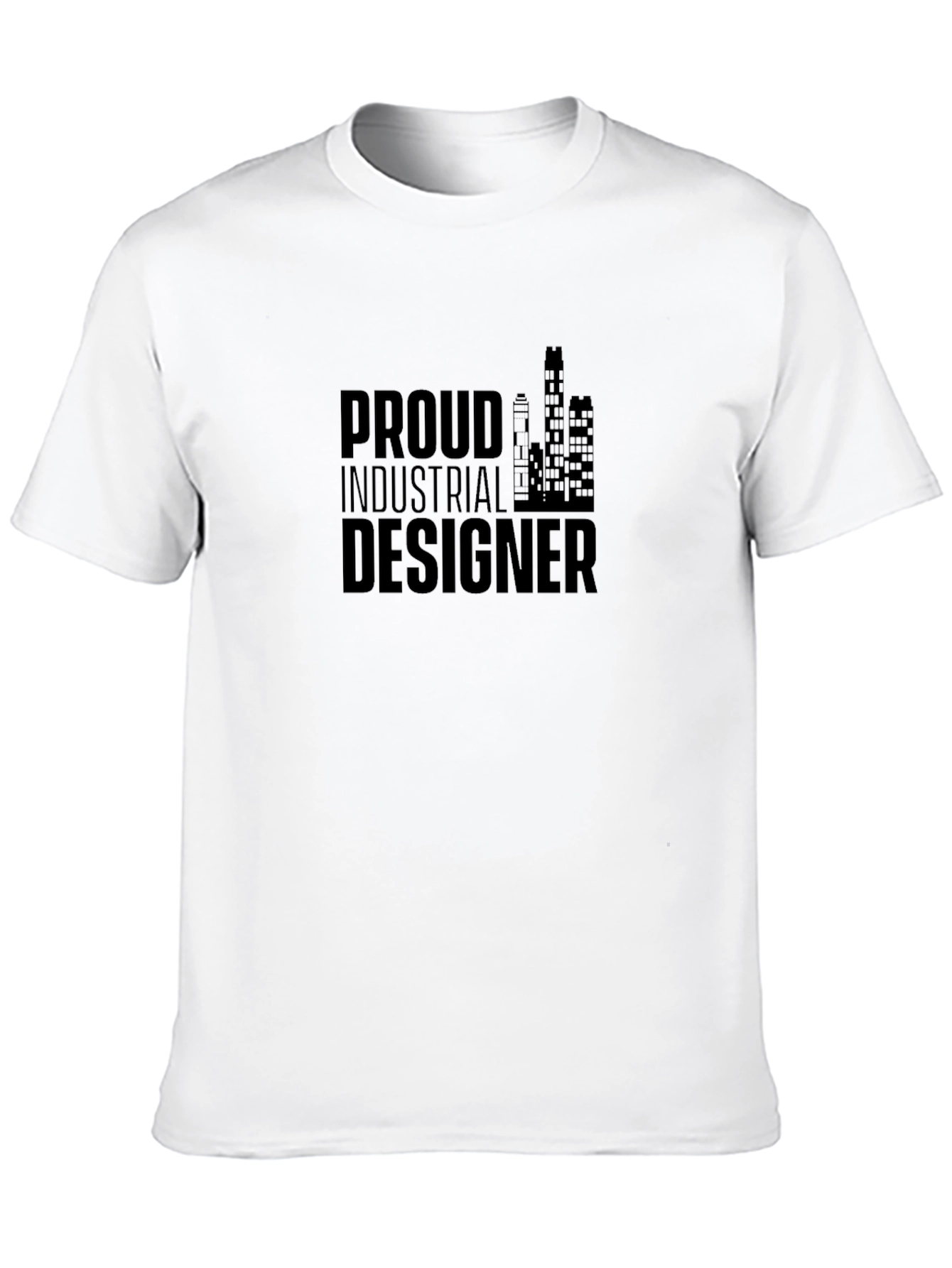 Show your pride with this black t-shirt featuring the words "Proud Industrial Designer" printed on the chest. This classic tee has a modern fit and is made from soft, breathable fabric, ensuring all-day comfort. The design includes an industrial cityscape silhouette. Perfect for industrial designers, students, or anyone who appreciates good design, this tee is great for casual wear, industry events, or as a gift. Wear your passion with pride!