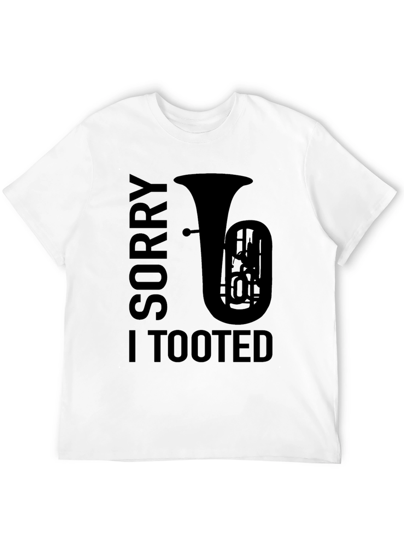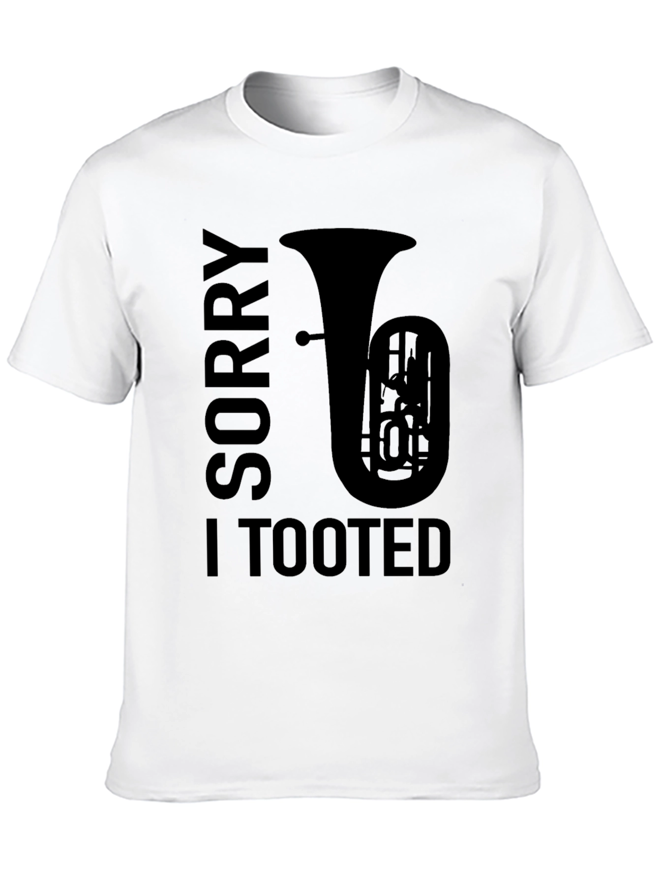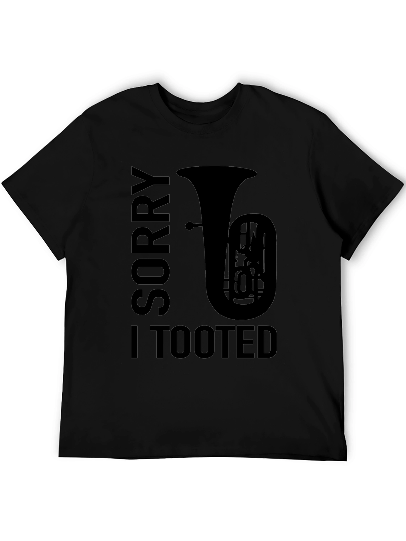 Show off your love for music and humor with this unique graphic tee! This black t-shirt features a bold design with the words 'Sorry I Tooted' alongside a silhouette of a tuba. Perfect for musicians, music lovers, or anyone with a playful sense of humor. Made from soft, comfortable fabric, this tee is ideal for casual wear, music events, or just lounging around. Stand out from the crowd and let your personality shine with this eye-catching shirt. Great as a gift for the tuba player in your life!