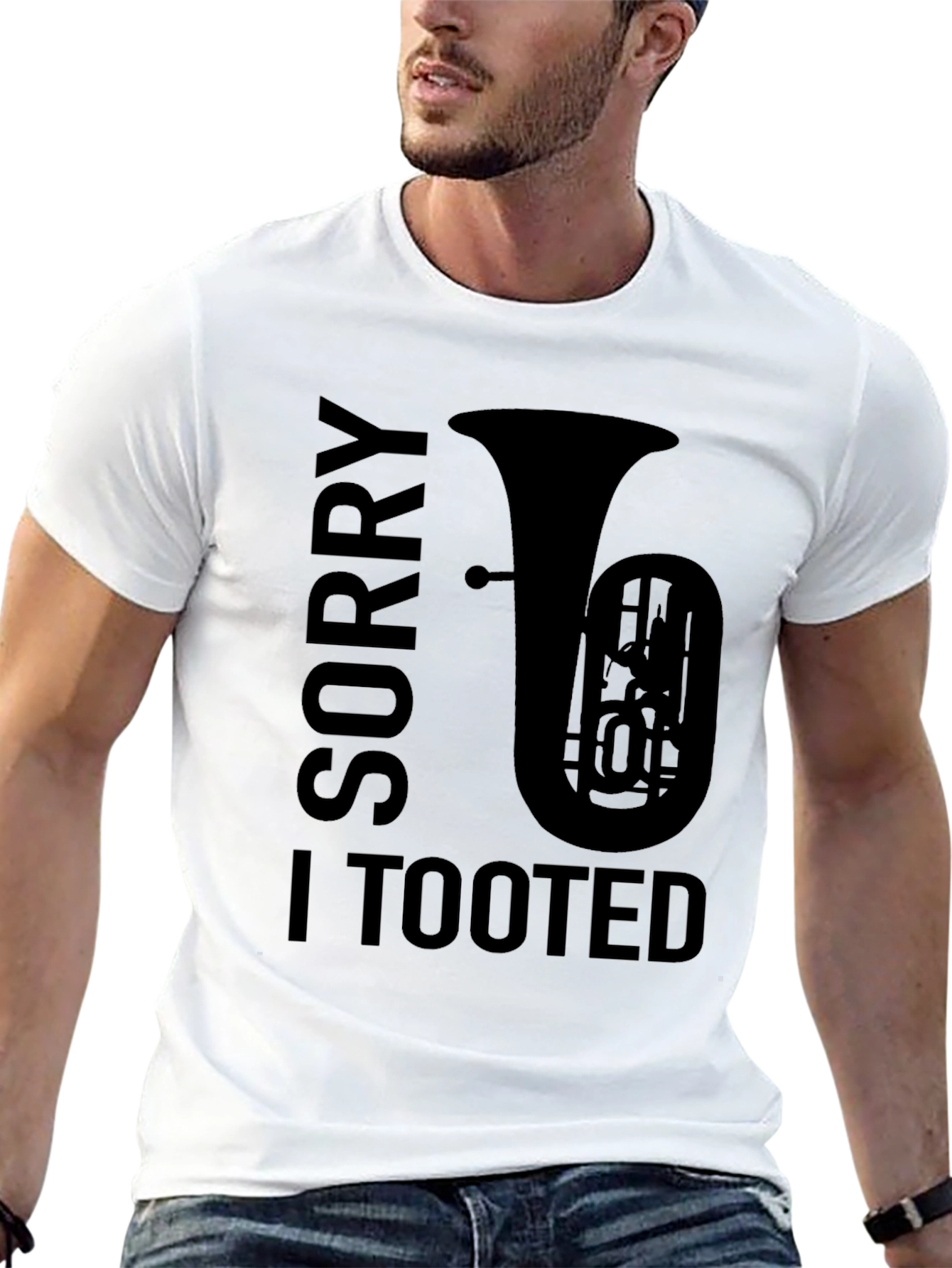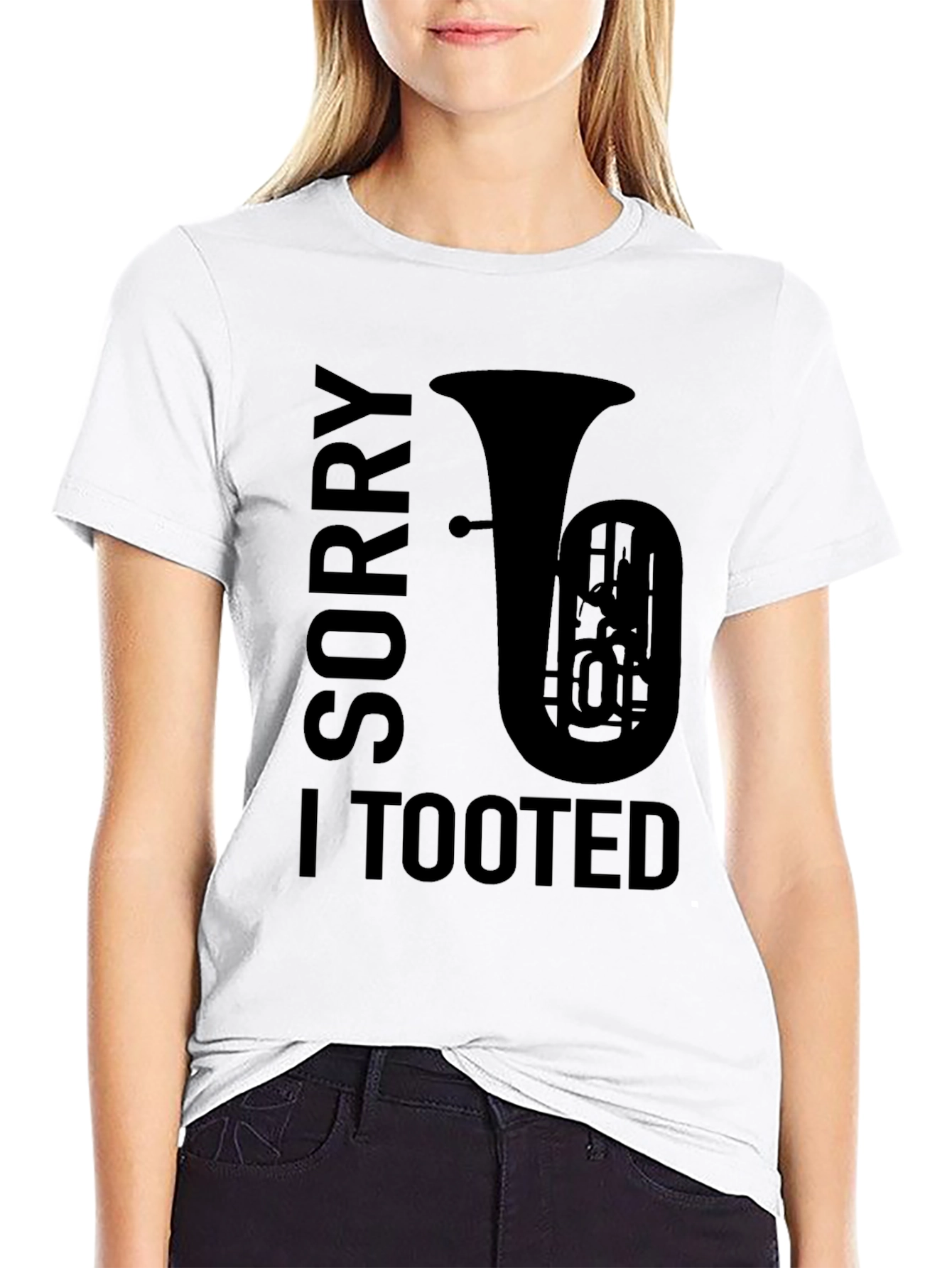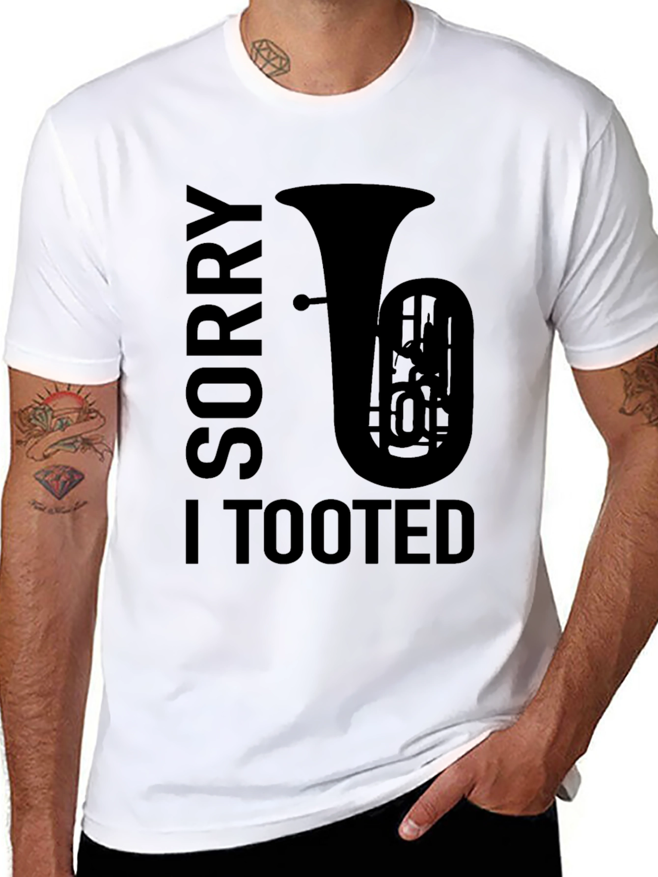 Show off your love for music and humor with this unique graphic tee! This black t-shirt features a bold design with the words 'Sorry I Tooted' alongside a silhouette of a tuba. Perfect for musicians, music lovers, or anyone with a playful sense of humor. Made from soft, comfortable fabric, this tee is ideal for casual wear, music events, or just lounging around. Stand out from the crowd and let your personality shine with this eye-catching shirt. Great as a gift for the tuba player in your life!